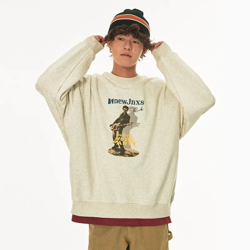 American hip-hop heavyweight fleece crewneck sweatshirt