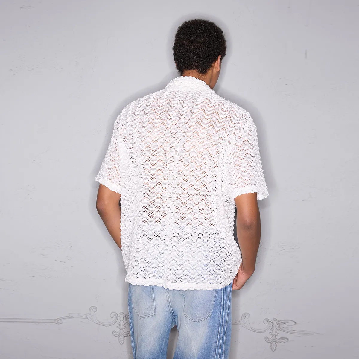 American streetwear summer lightweight breathable wave pattern short-sleeve shirt, loose unisex top